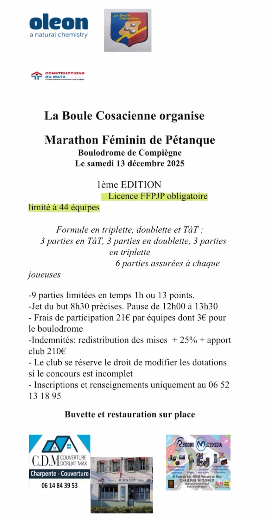 - 09/03/2023 BOULODROME DE COMPIÈGNE : Ajout de deux concours en Doublette au boulodrome le vendredi 24 et le vendredi 31 Mars