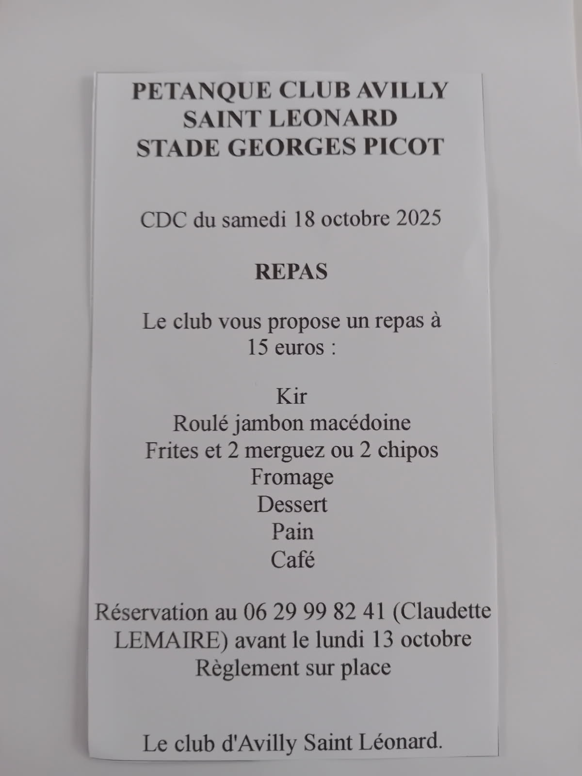 - 03/10/2025 AVILLY SAINT LÉONARD : Affiche réservation repas pour le CDC du 18 Octobre