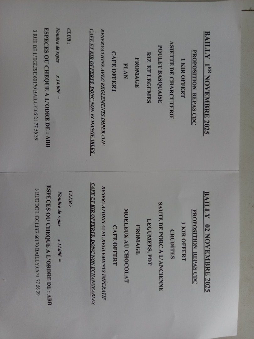- 06/10/2025 BAILLY : Affiche réservation repas pour le CDC du 1er et 25 Novembre
